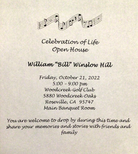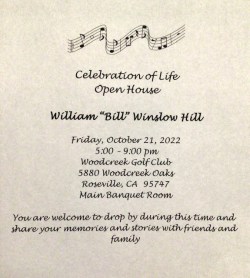 The Sierra Nevada Winds lost someone near and dear to us this week. Bill Hill served as the Conductor of the SNW for as long as all of our other conductors combined. He took the podium in 1995, and continued to lead us for 16 years until he passed the baton to our current leader, Bob Halseth, due largely to his failing vision. Bill was a larger than life individual, with a clear, unwavering concept of the sound he wanted from the band, and the skills to help us achieve that sound. He constantly searched for exceptional, challenging new music for the band to perform, and spent untold hours crafting the perfect programs to present to our audiences. His leadership guided the band to tremendous musical growth, and helped us to achieve our potential as an ensemble. He was a force of nature in the California music education community, and the ripples of his positive effect as a teacher to musicians at the high school, college and adult levels will continue to spread forever. We cannot adequately express our sorrow at his passing.